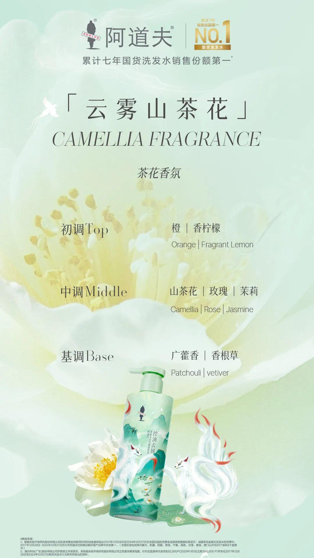 阿道夫升级版山海经茶麸系列,特调的云雾山茶花香,持久留香72小时(图源品牌官方公众号)