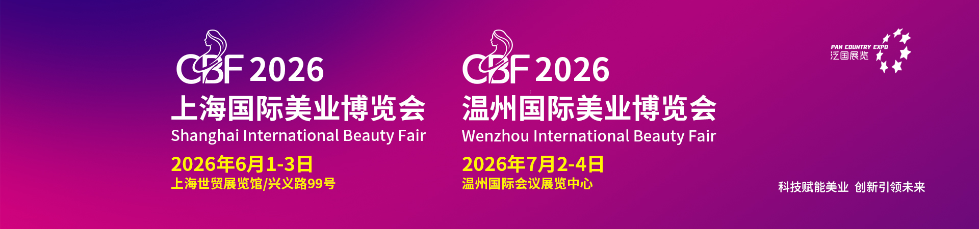 我们诚挚地邀请您参加2026上海&温州国际美业博览会(CBF 2026)!本次博览会将于6月1日-3日和7月2日-4日在上海世贸展览馆(兴义路 99号)/温州国际会议展览中心盛大举行,汇聚全球美妆、个护、医美、供应链及新兴科技企业,打造亚太地区最具影响力的美容产业盛会。